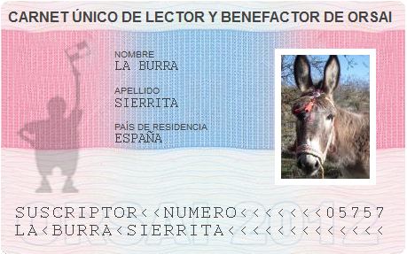 Hace ya algún tiempo que mi Arriero me ha hecho suscriptor de Orsai, como demuestra mi carnet único de lector y benefactor de Orsai número 05757 (¿será el próximo gordo _Hernán Casciari 😉 _ de la lotería de navidad?)
